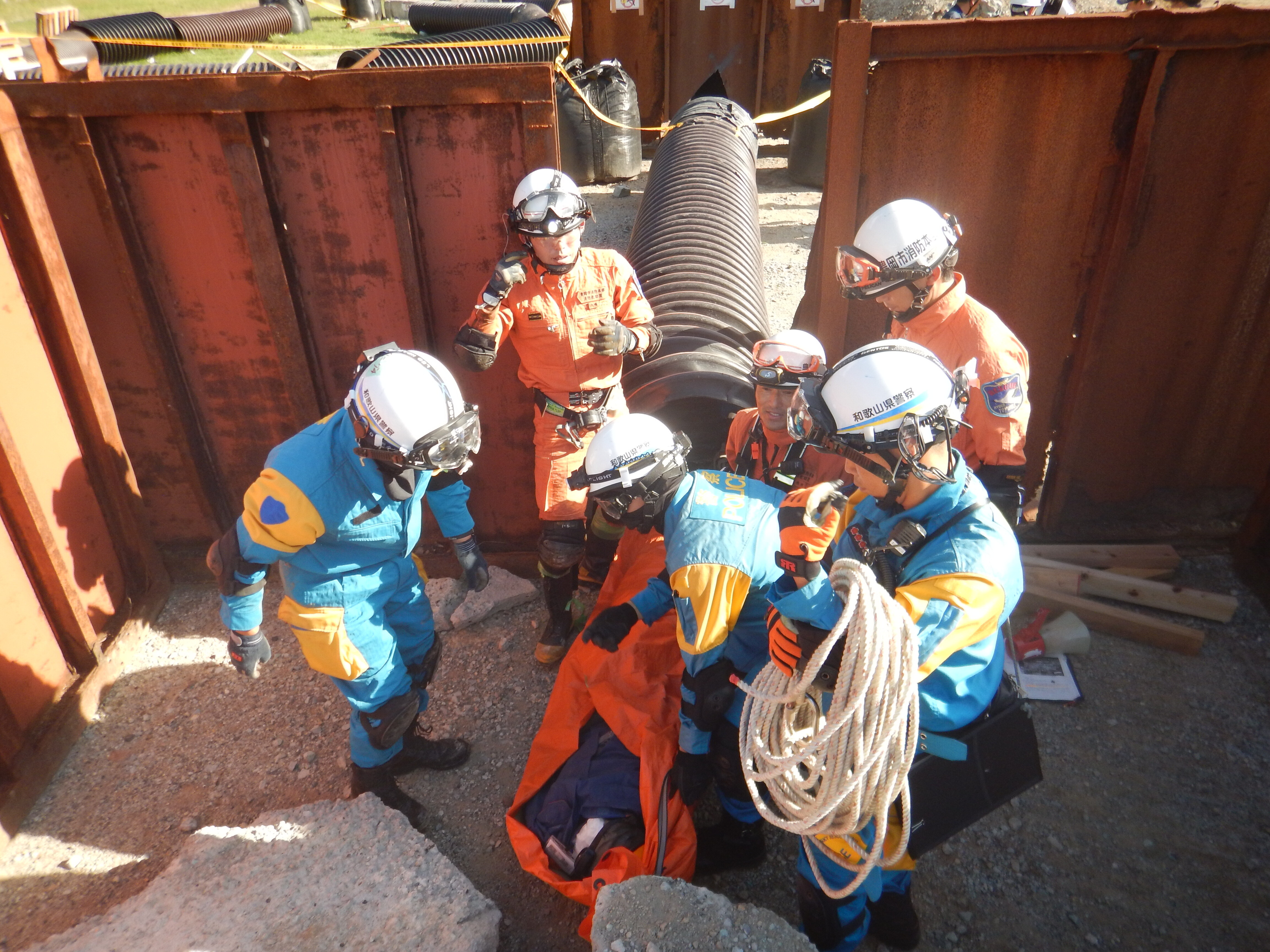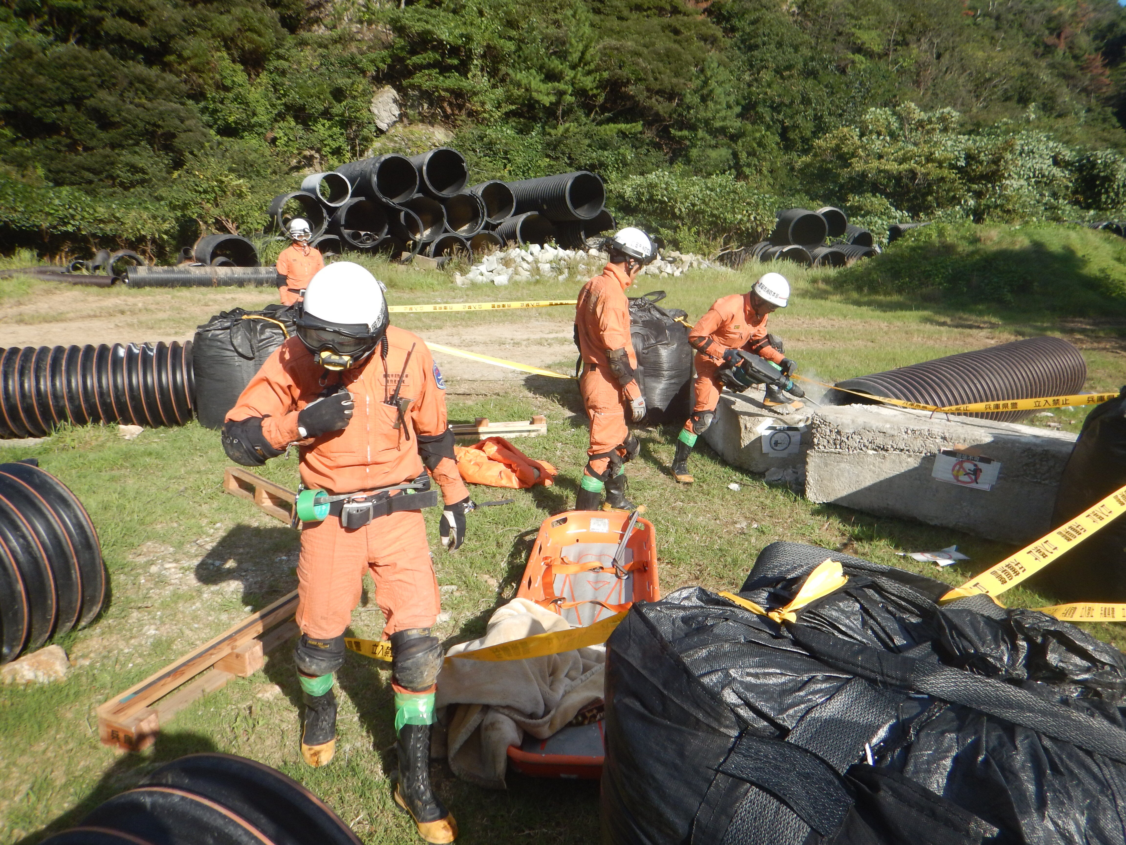 ・救助隊:倒壊家屋の閉鎖空間を検索し、要救助者3名を救出する。