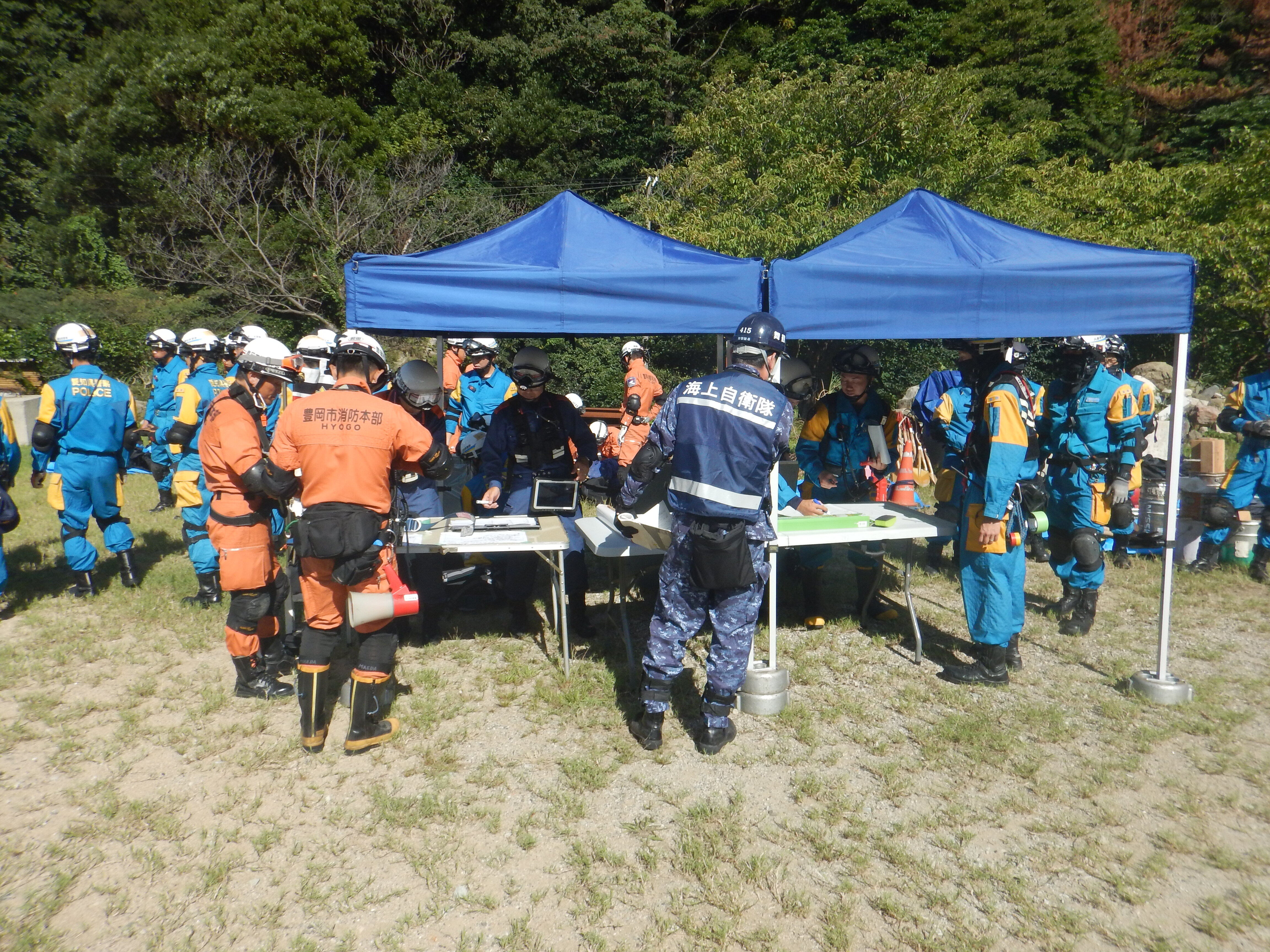 ・指揮隊:合同調整所を開設し、警察・海上自衛隊・陸上自衛隊・海上保安庁・国土交通省、豊岡市竹野消防団・消防が集結し、情報収集活動を行い活動部隊の配置、活動内容を調整する。